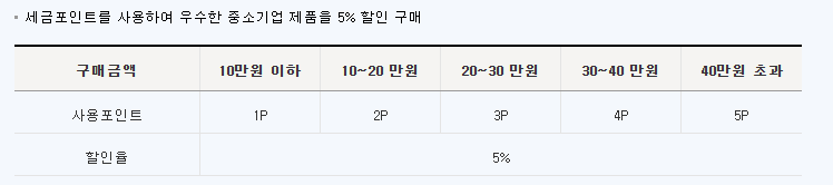 ●  세금포인트를 사용하여 우수한 중소기업 제품을 5% 할인