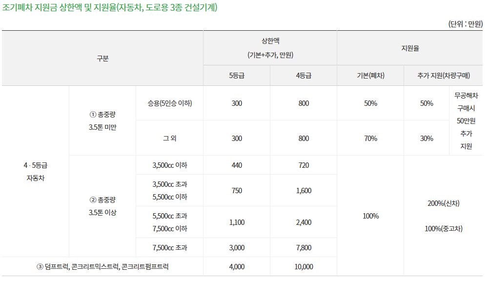 조기폐차 보조금 지원 : 올해부터 4등급까지 확대됨