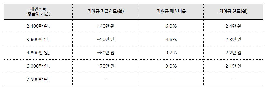 - 납입한 금액에 비례해서 정부 기여금 지원
