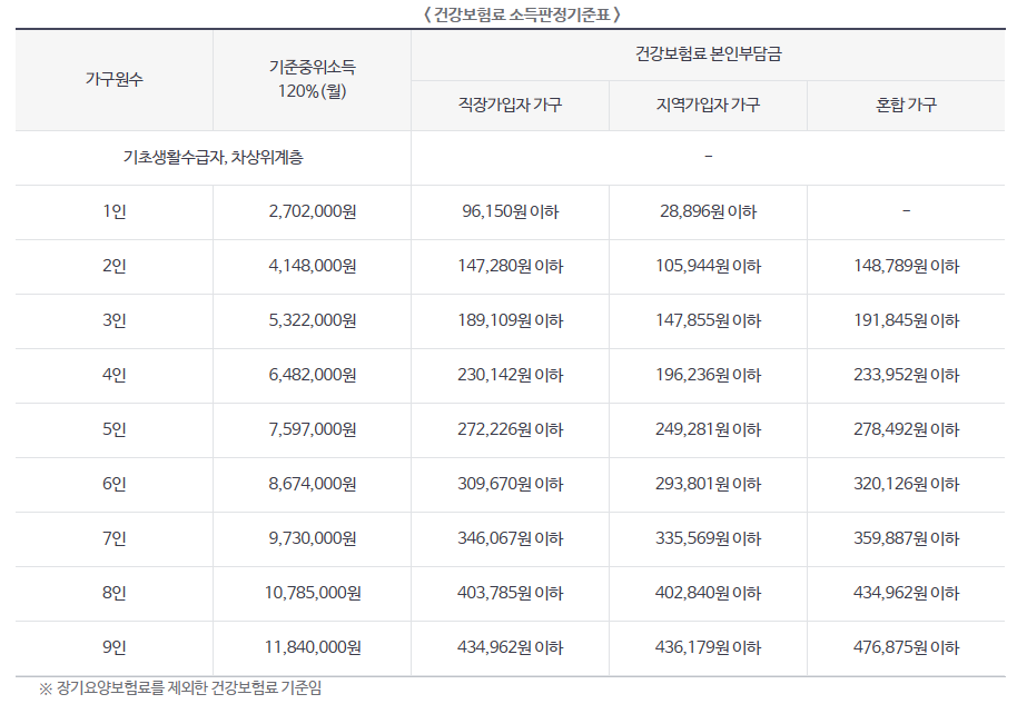 | 소득기준 | 중위소득 120%이하(가구단위) | |